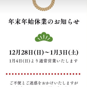 年末年始休業のお知らせ 令和7年も多くのお客様とのご縁に支えられ、 大切な時間に携わらせていただきましたこと 心より御礼申し上げます。 さて、勝手ながら下記の期間を年末年始休業とさせていただきます。 令和… 続きを読む
