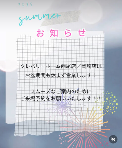 お盆期間の営業のお知らせ